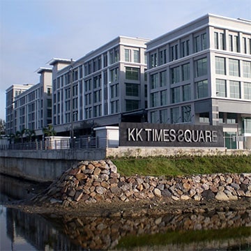 被譽為哥達基納巴魯(馬來西亞)有史以來最大的城市商業項目KK時代廣 場,它是為了順應整個城市商業拓展計劃而設計的。KK時代廣場非常龐大, 占地23英畝,由寫字樓、商業設施和公共空間三部分組成,可以為當地居民 及日益增長的游客提供購物、餐飲、娛樂及休閑活動等全方位的服務。
